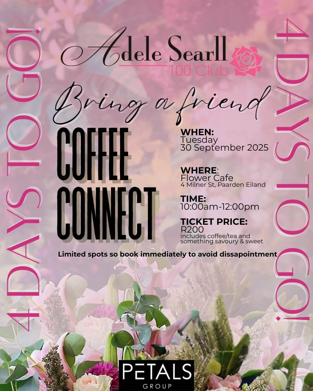 With thanks to our longstanding partner PETALS GROUP, we'll gather at the beautiful Flower Café for coffee, conversation & community.